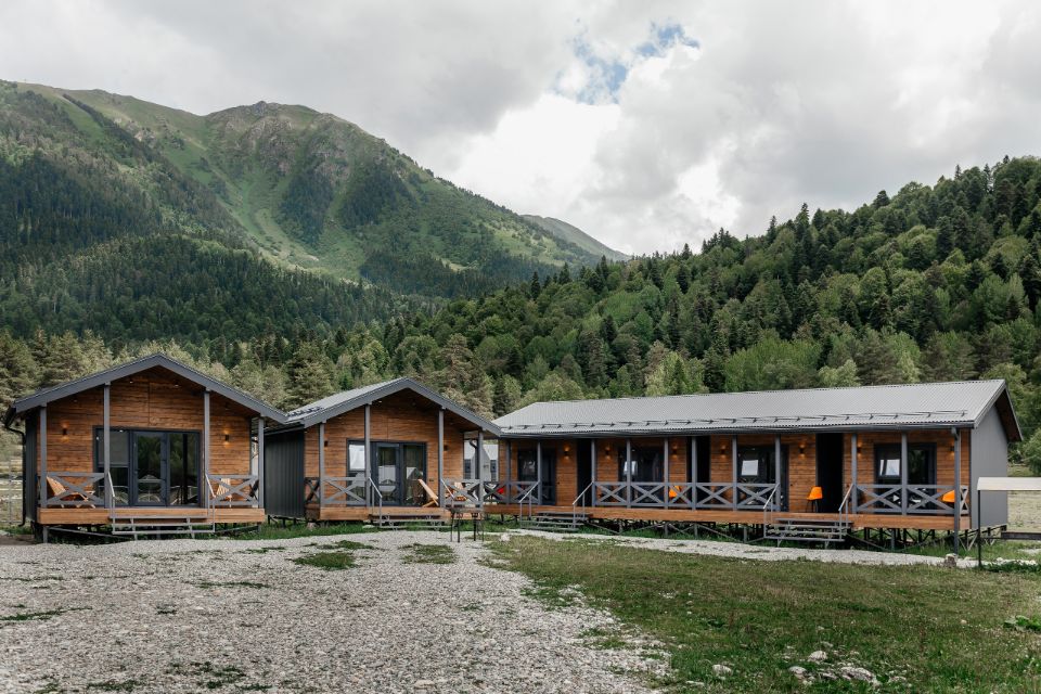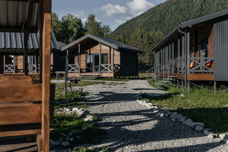 В домиках есть холодильник, плита, столовые приборы и посуда.