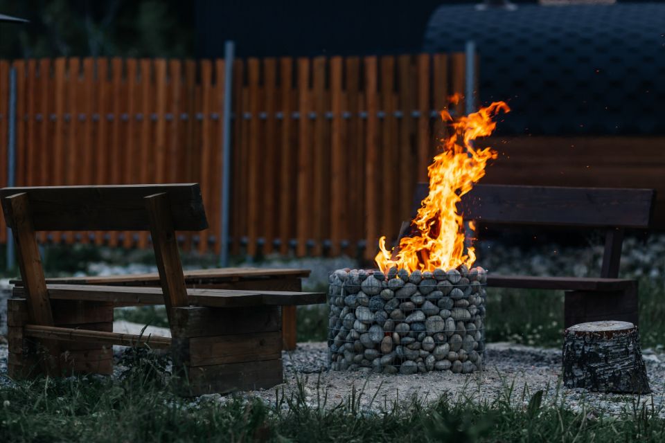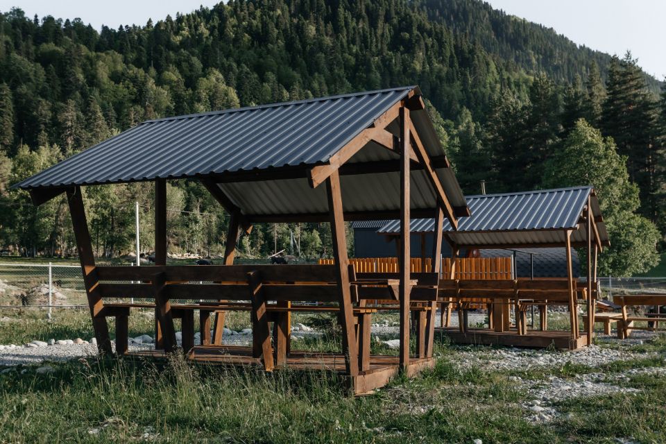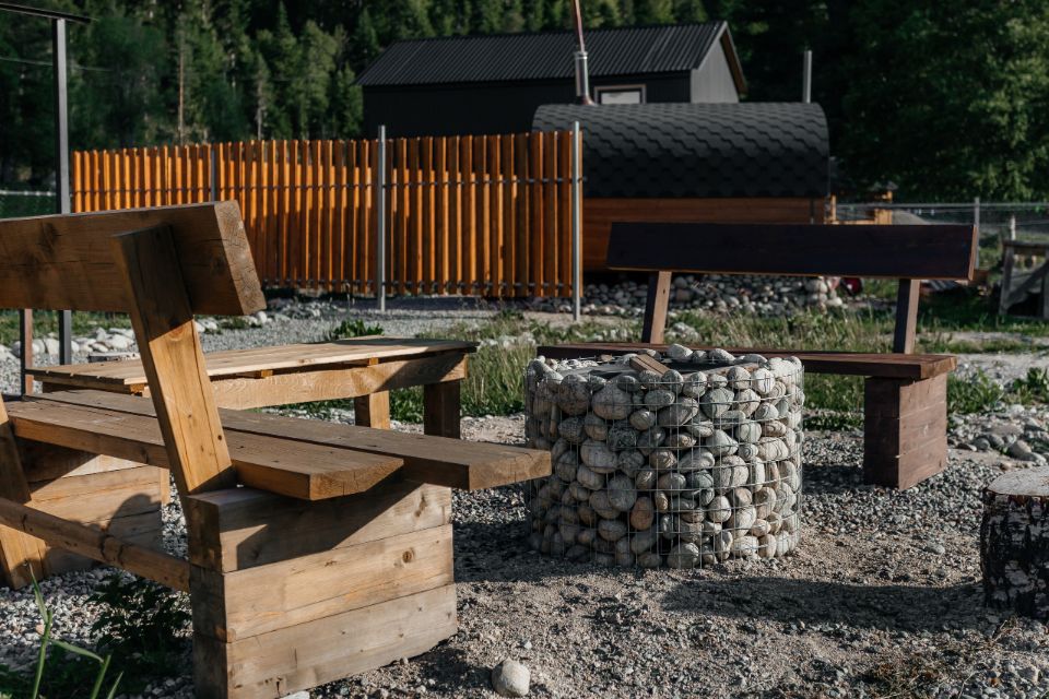 Территория базы огорожена. Для каждого домика предусмотрено парковочное место, парковка и территория базы находится под круглосуточным видеонаблюдением. У нас есть 2 большие беседки, каждая из которых вмещает до 12 человек и мангальные зоны. Вечером можно погреться у огня в уютной костровой зоне. Любителям бани предлагаем попариться в нашей дровяной кедровой баньке!