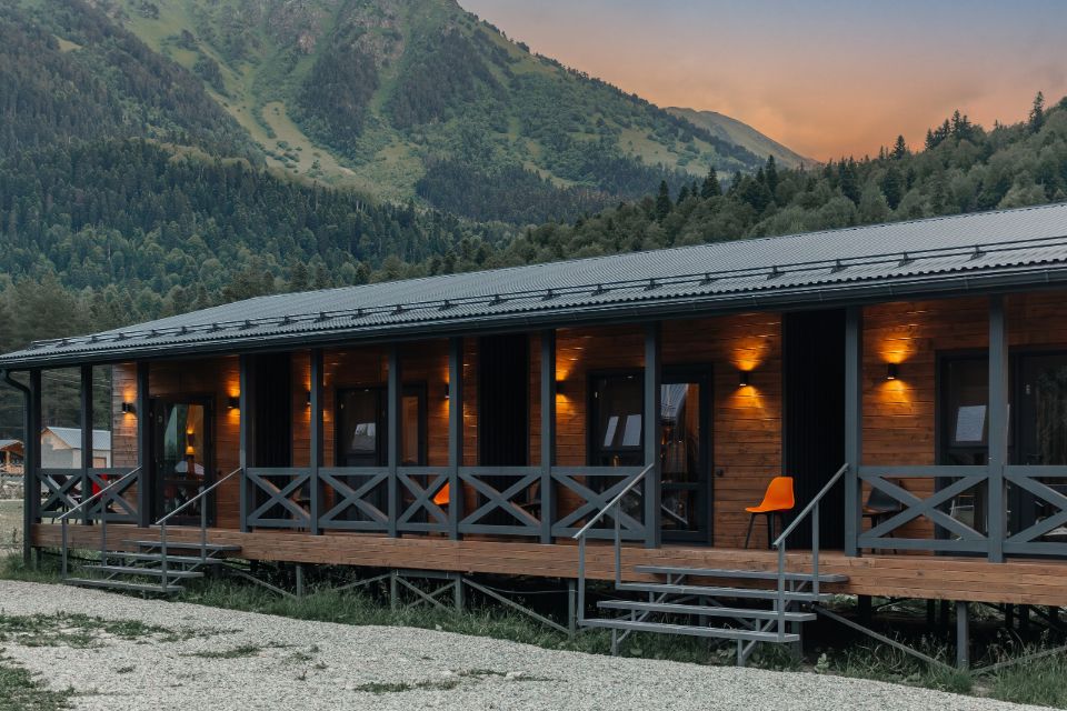 В санузлах подогрев пола и душевой зоны, фен, гигиенический душ. С территории открывается необыкновенный вид на горы Смирнова, скалы Горячева (3138 м), рядом проходит множество пеших туристических маршрутов разной протяженности и сложности.Кол-во гостей до 4 человекПлощадь домика 35 кв.м